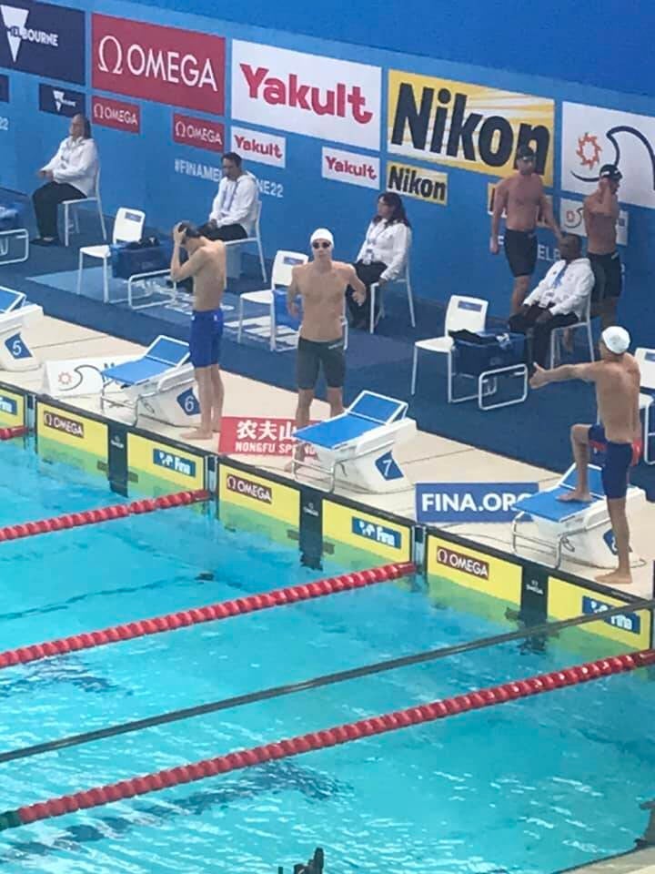 Het werd een fantastische ochtend en er kwamen veel vragen op mijn af. Why this, what is that? Where is the camera? Was it a good swim? Emma genot! En toen we om 12.31 ook nog eens David Popovici binnen zagen komen voor zijn 400m vrije slag heat, schreeuwde we samen zijn naam hard uit, en kregen een blik van David Popovici! “He is watching to us!!” Emma was nu helemaal vol van blijdschap, ook al had Popovici geen zin om deze race serieus te nemen en eindigde, bijna 20 seconde achter de eerste zwemmer als laatste.
